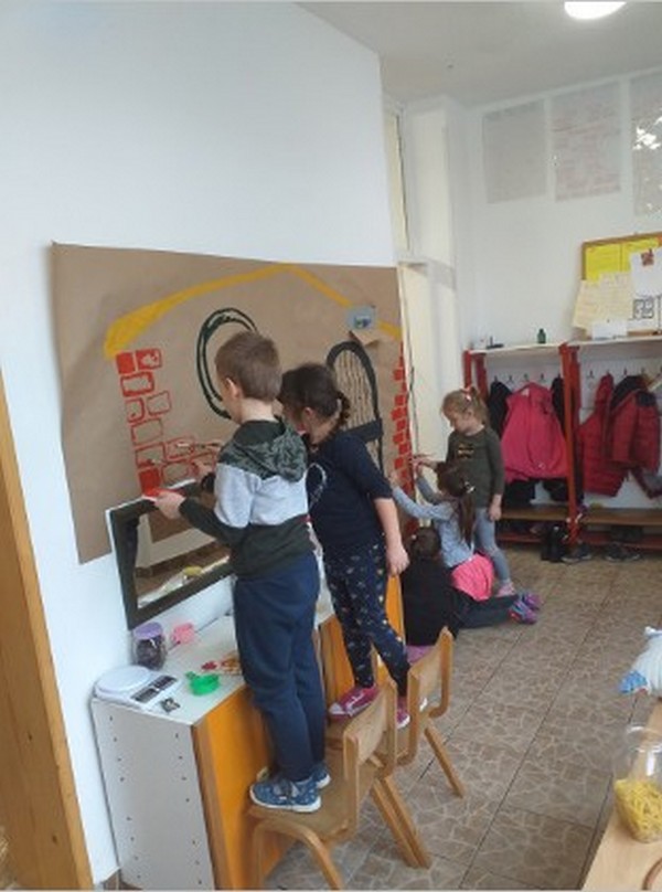 Сви заједно, васпитачи, деца и родитељи су учествовали у прикупљању материјала који су нам потребни како бисмо уредили наше двориште. Све групе су заједно осмислиле како би могло изгледати двориште, припремили фотографије као идеју за родитеље и на поподневним радионицама са малим групама родитеља ћемо у току следеће недеље реализовати идеје.